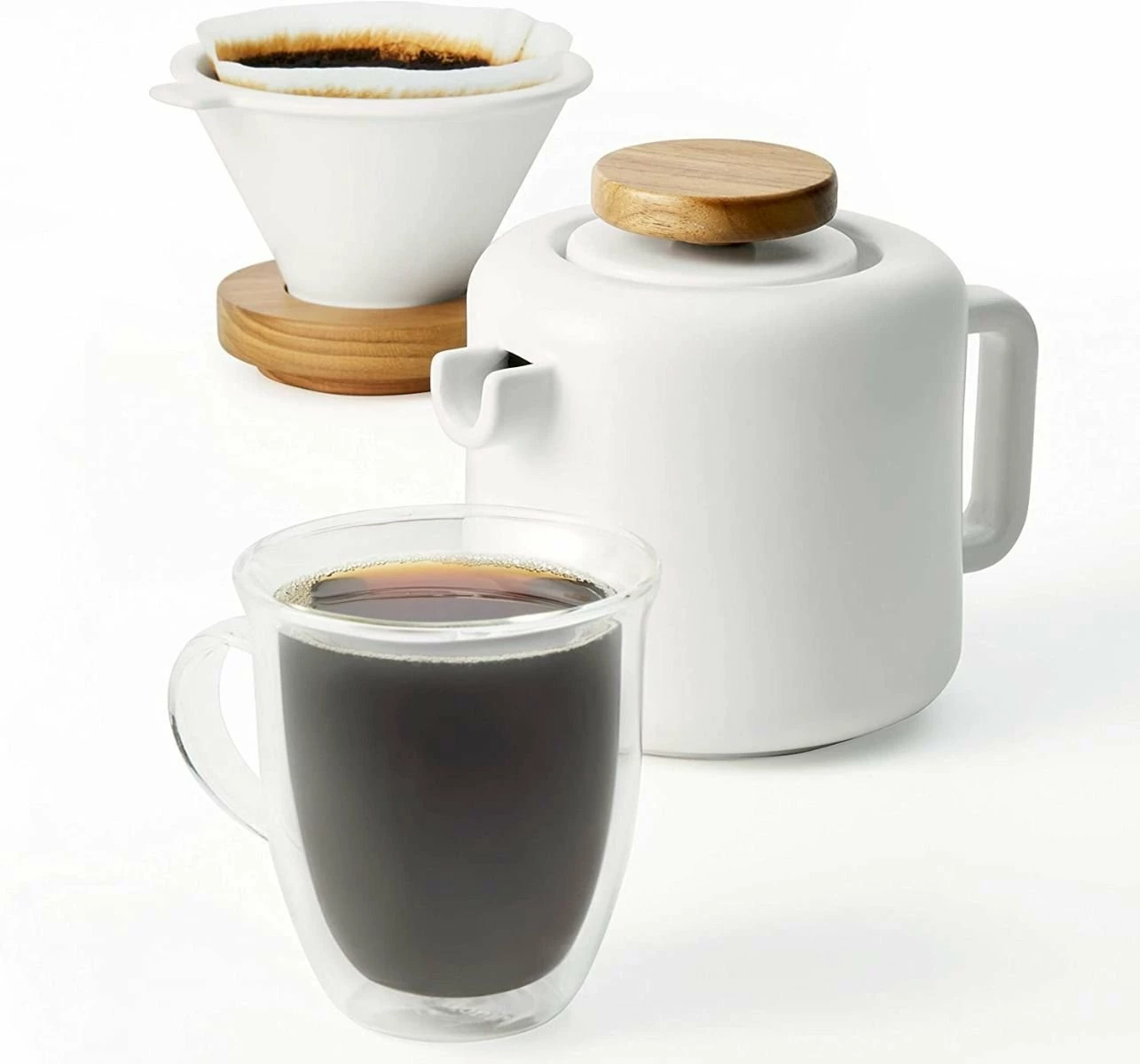 - Pour-over coffee set allows you to control water flow, temperature, & ratio for bold & rich flavors