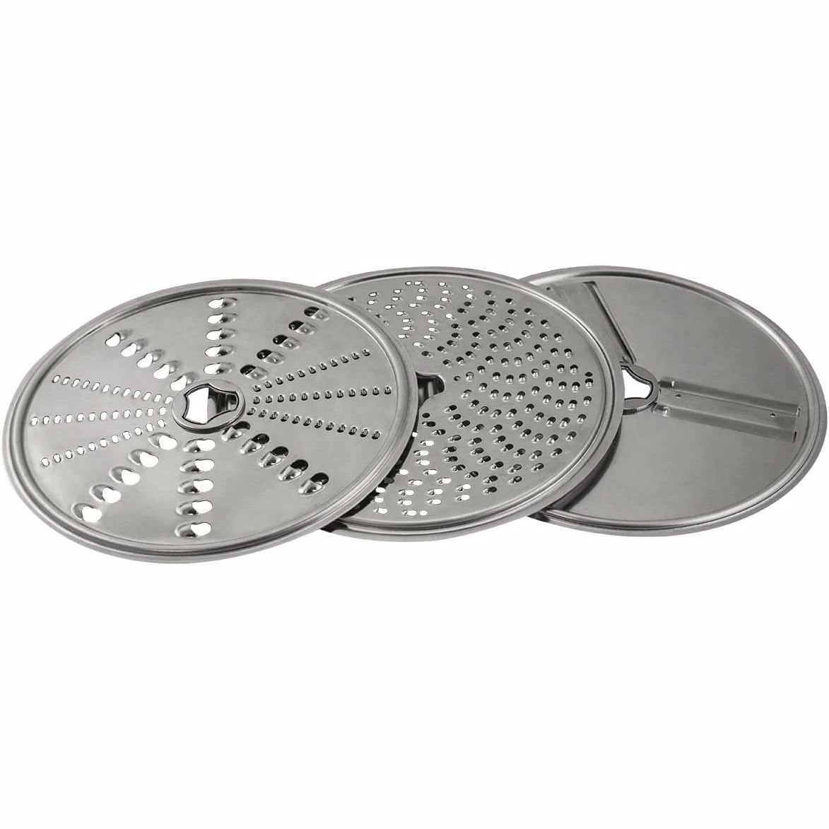 - Comes with 3 disks: Shredding, Grating, and Slicing Disc