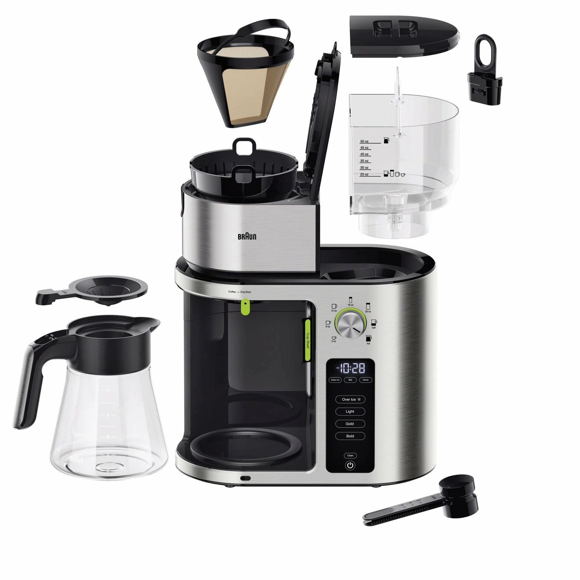 Enjoy a fresh, aromatic blend of hot or iced coffee with Braun’s MultiServe Coffee Machine! This evolutionary coffee maker is equipped with a range of smart functions, including Braun’s ExactBrew technology that automatically calculates the precise temperature, speed, and water flow for superior flavor and a velvety smooth texture. With BrewChoice Plus, you can customize your coffee for a light, gold, or bold strength, or choose iced coffee for a refreshing, never watered down cold brew!