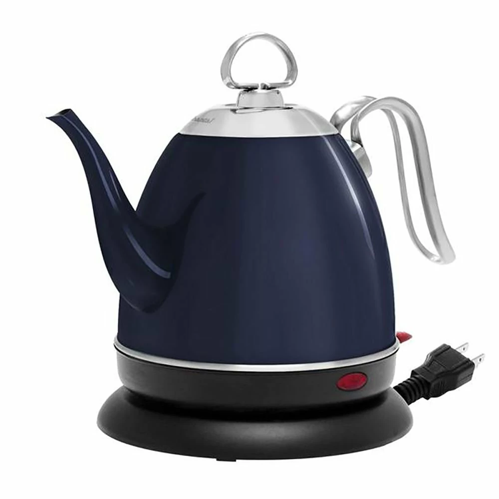 With its 18/8 stainless steel interior (no plastic) and slow-pour spout, the Chantal Mia 32-Ounce Electric Kettle in deep Cobalt Blue is the quickest way to a perfect pour-over coffee when you just don’t want to fire up the stovetop.