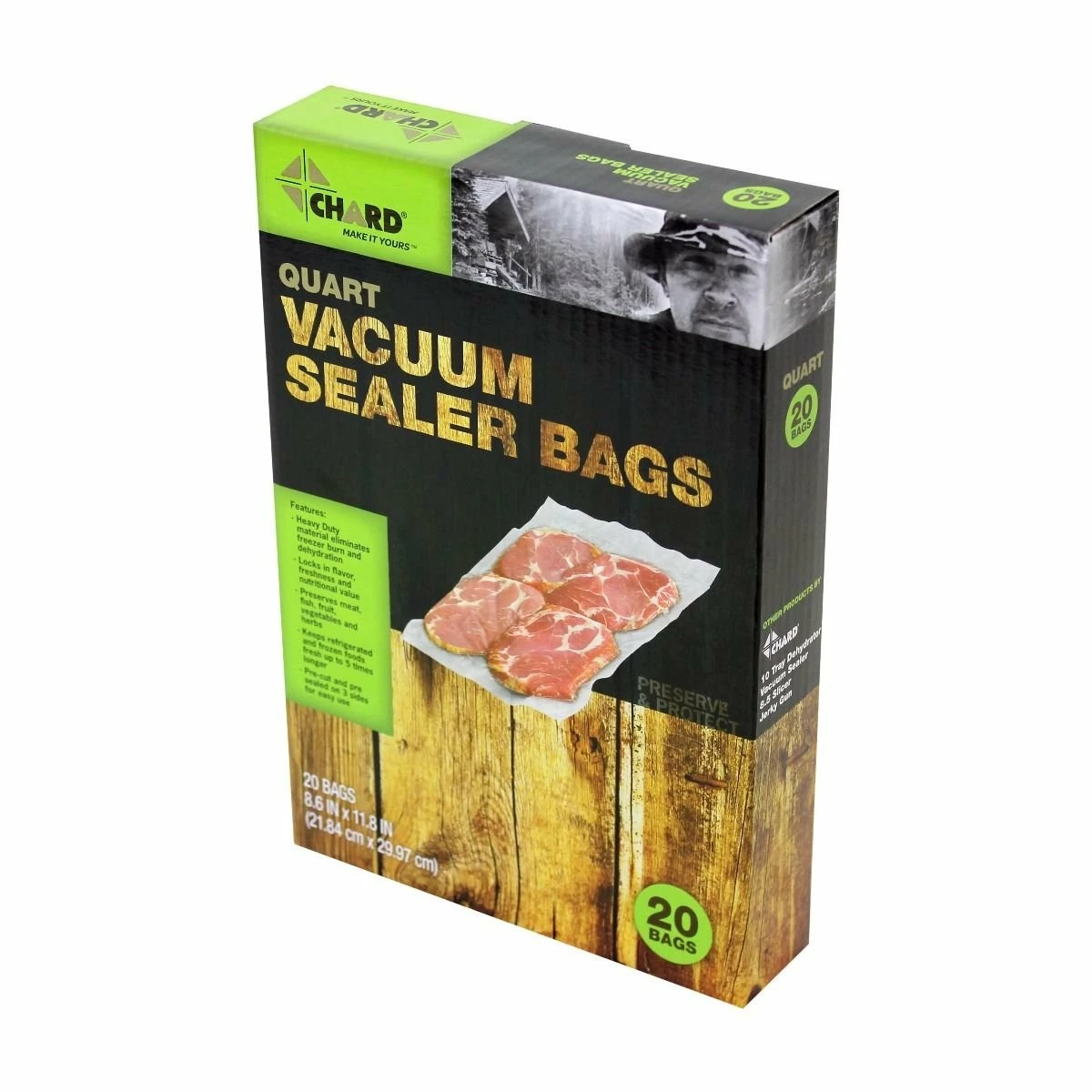 Chard Vacuum Sealer Bags are the perfect tool when it comes to preserving and packaging your favorite foods. Storing foods that are in season will save you time and money with delicious meals later. Whether you are sealing dehydrated jerky from your last hunting trip or preparing garden vegetables for long-term storage, Chard Vacuum Sealer Bags provide great results by drawing air out quickly and locking in flavor and nutrition. Prolong the life of your favorite foods and snacks by eliminating freezer burn and wasted food with these vacuum sealer bags that are pre-cut and pre-sealed on three sides for easy use. Made from heavy-duty, BPA-free material. Available in various sizes, lengths and quantities. Chard Vacuum Sealer Bags are universal and work with all brands of vacuum sealers.