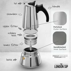 Escali London Sip 6 Cup Stainless Steel Espresso Maker | Silver