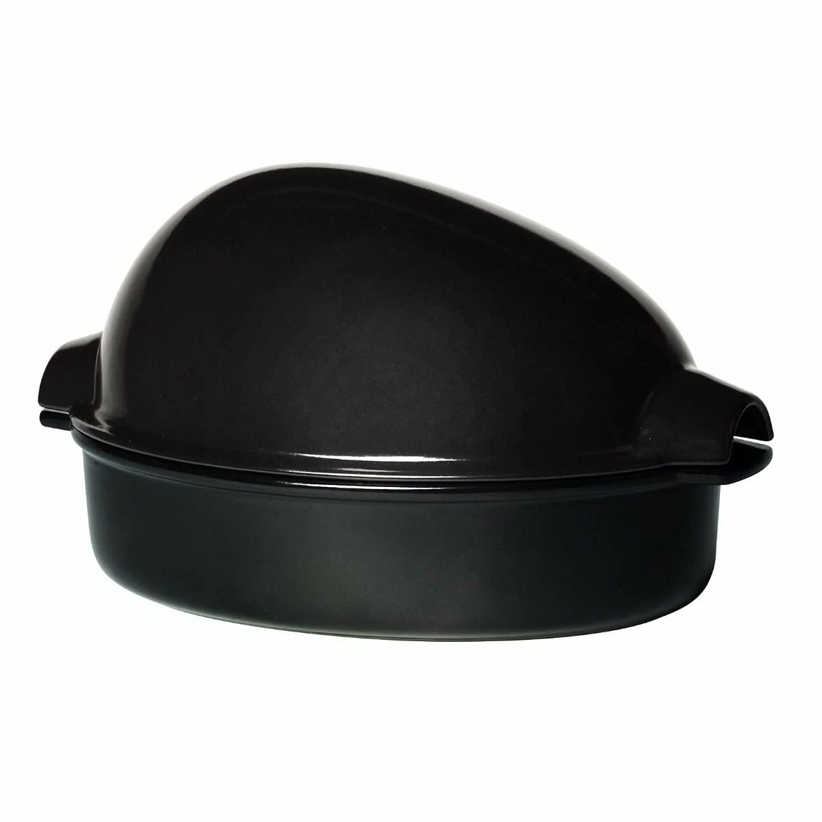 Roast Thanksgiving turkey, holiday ham, vegetables, and more with the Emile Henry Large Roaster in Charcoal. This beautiful, high-quality roaster is made of Emile Henry’s refractory ceramic that undergoes an exclusive firing process, resulting in strong, durable bakeware that can withstand years of use. This roaster includes a sturdy ceramic lid that’ll lock in steam and circulate heat, resulting in evenly browned meats that are moist and tender with each use. This roaster is ideal for cooking whole birds, meats, and vegetables, and has a beautiful glazed finish that’ll allow you to serve food right in the dish for an elegant presentation. For special occasions and casual dinners alike, try the Emile Henry Large Roaster today!