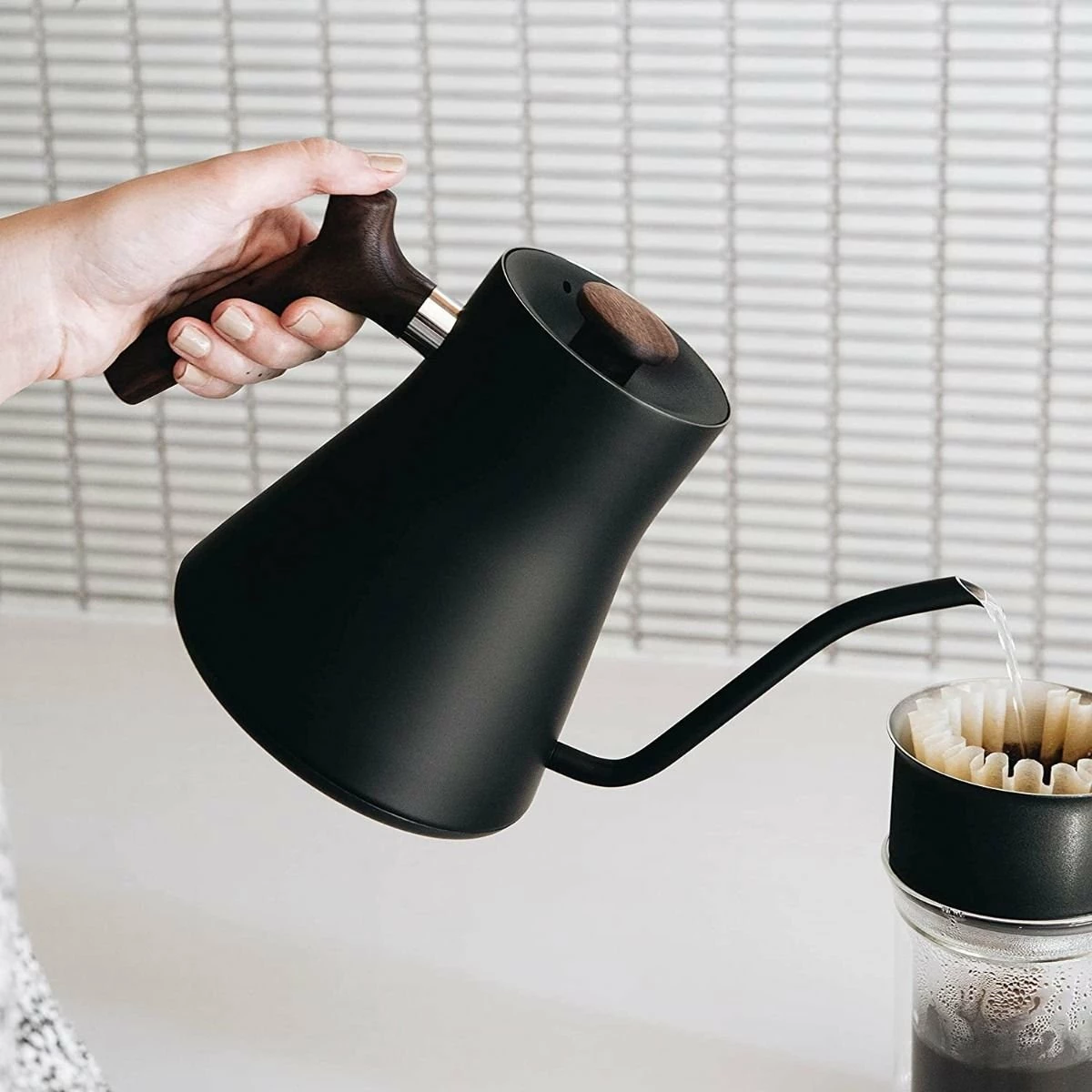 Designed to deliver an outstanding pour-over coffee every time, the Stagg EKG Electric Pour Over Kettle (Matte Black & Walnut) brings a stylish design and unmatched efficiency to your morning routine! The 0.9L stainless steel kettle features a modern Matte Black finish with rich walnut handles. The extended gooseneck has a precision spout design to control flow rate and works with the counterbalanced handle to invite the precise, slow pouring that is the key to getting the best flavor from pour-over coffee.