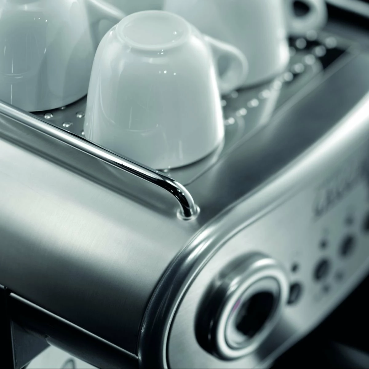 - Automatic pre-infusion: wets the coffee prior to full pressure brewing, causing the coffee to swell, giving a deeper, more complete extraction of flavor