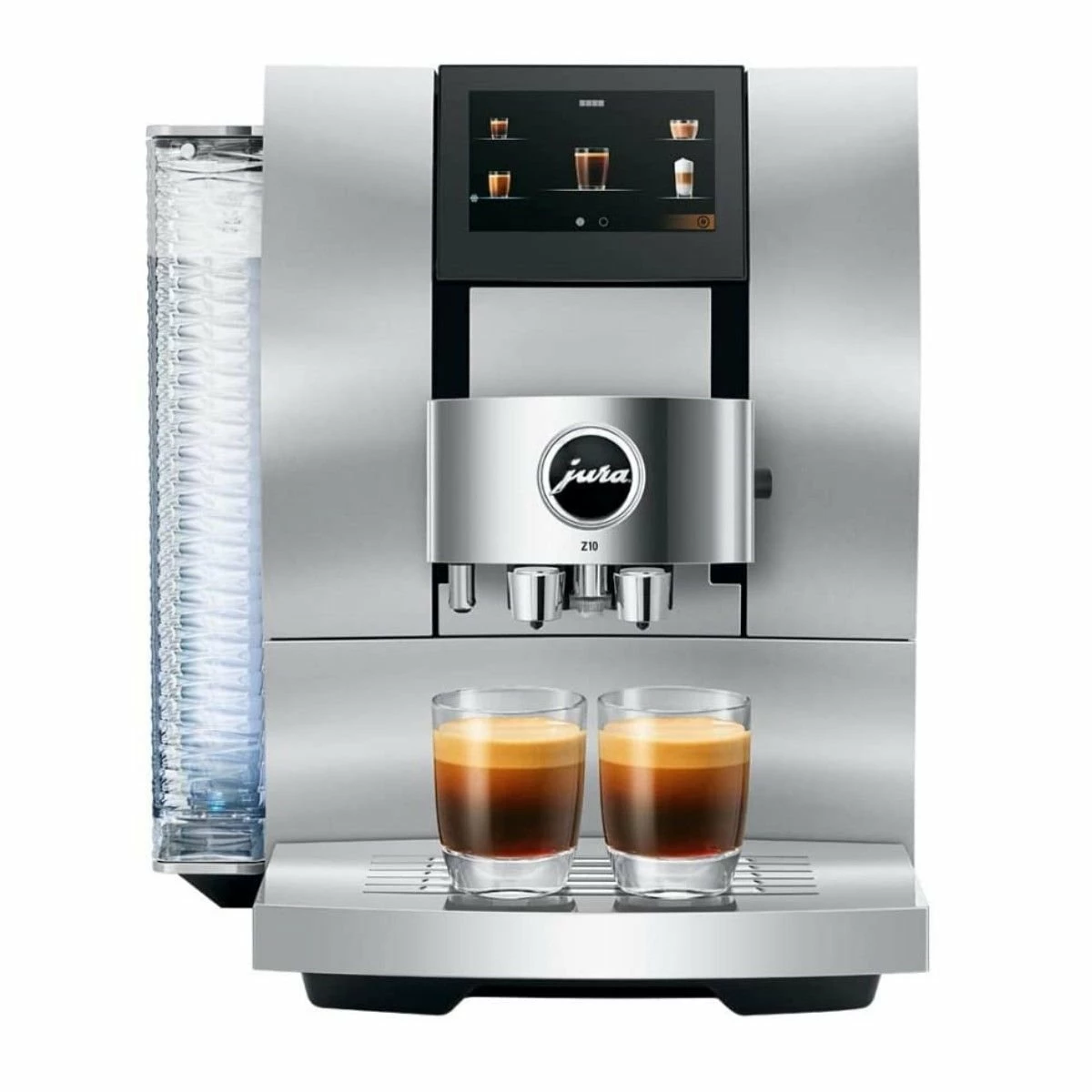 A great cup of coffee in the morning is the best thing to get you going and start your day off right. And with the Z10 Automatic Coffee & Espresso Machine in Aluminum White from Jura, you’ll have a perfect cup every time, no matter what your preference! This coffee machine is capable of producing up to 32 specialty coffee and tea products, from a full pot of coffee, to espresso, to hot water for green tea. With a built-in, adjustable coffee bean grinder, and easily customizable settings, this coffee machine is truly built to make the perfect cup no matter what you like! This maker is built with smart technology in mind, featuring WiFi connection, cold extraction processing for real cold brew coffee, intelligent preheating, 3D brewing technology for even flavor absorption, active bean monitoring, one-touch function for quick brewing, and a powder chute for pre-ground coffee. This coffee machine is made of highly durable plastic, metal and has aluminum front paneling with bright, easy-to-read, touch-screen controls with images so you’re never confused. The design is stylish and elegant for any kitchen, with a bright, aluminum white modern finish. With the built-in grinder you get the freshest coffee flavors with less acidity and flatness. All you have to do with this coffee maker is select from simple options on the screen determining what you’re making, coffee ground size, and whatever other selections for your favorite cup, and soon you’ll be brewing a perfect drink. Iced cold brews, espressos, macchiatos and more await you! A built-in rinsing system will help you keep your machine clean. The included manual has full, easy-to-use instructions to get your coffee machine up and running in no time! Know that your coffee machine will give you great cups every time. Order your very own Jura Z10 Automatic Coffee & Espresso Machine in Aluminum White today!