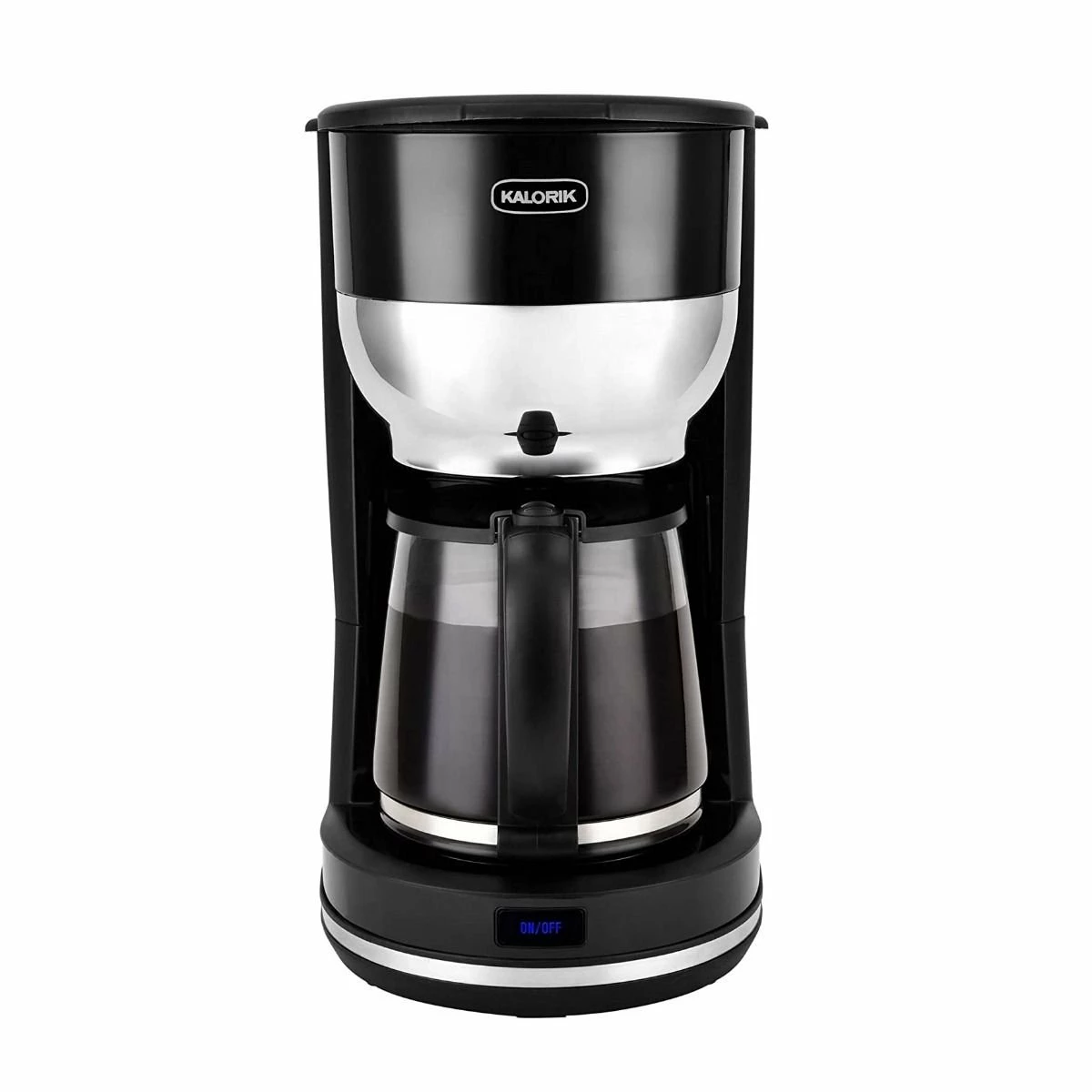 Make delicious coffee in the chic, Kalorik 10-Cup Retro Coffee Maker in black. This simple coffee maker makes up to 10-cups of coffee at once, perfect for making coffee enough for your whole family. The retro design adds some charm to your countertop while the keep-warm function will ensure you have piping hot coffee for up to two hours after it brews. Too eager for your morning cup to wait? The auto-pause function allows you to pour a cup before the whole carafe is brewed. Add some charm to your morning routine, get the Kalorik 10-Cup Retro Coffee Maker in Black today!