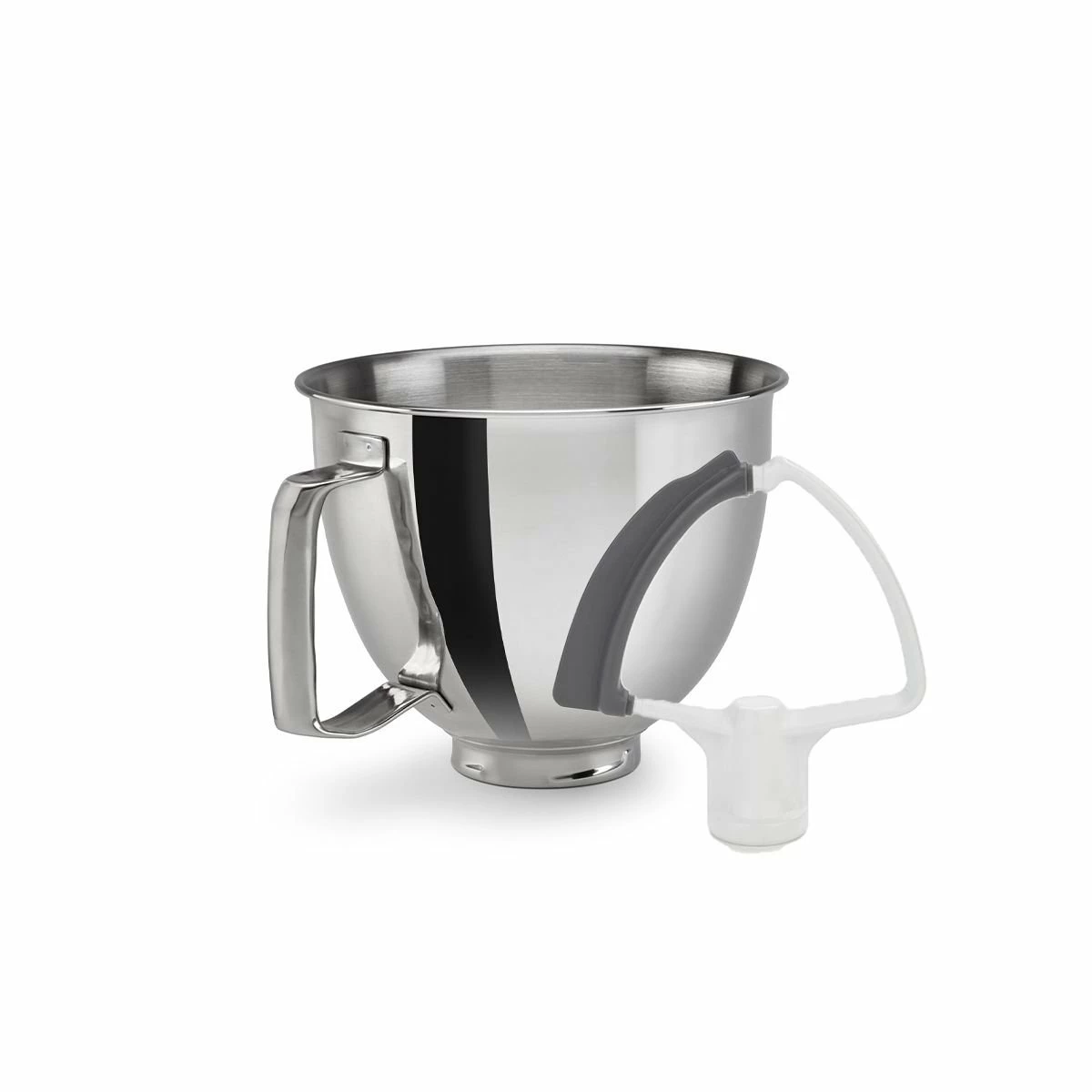 The KitchenAid 3.5-Quart Flared Polished Stainless Steel Bowl is compatible with all KitchenAid 3.5-Quart Tilt-Head Stand Mixers and is perfect for small meals or side dishes, but has enough capacity to whip up batter for 5 dozen cookies, large loaves of homemade bread, or even fluffy breakfast eggs and pancakes. The lightweight steel bowl is dishwasher safe, so the accessories can wash themselves as you enjoy your fluffy omelets or gooey baked goods. You’ll also get the Flex Edge Beater specifically designed to mix ingredients that get stuck to the sides of the bowl, saving your time and energy from the pain of having to stop and scrape the sides during the mixing process. Its steel and silicone-coated construction doesn’t just make it durable for the toughest of batters, but it also makes it that much safer for dishwasher use: simplicity and efficiency at its finest!