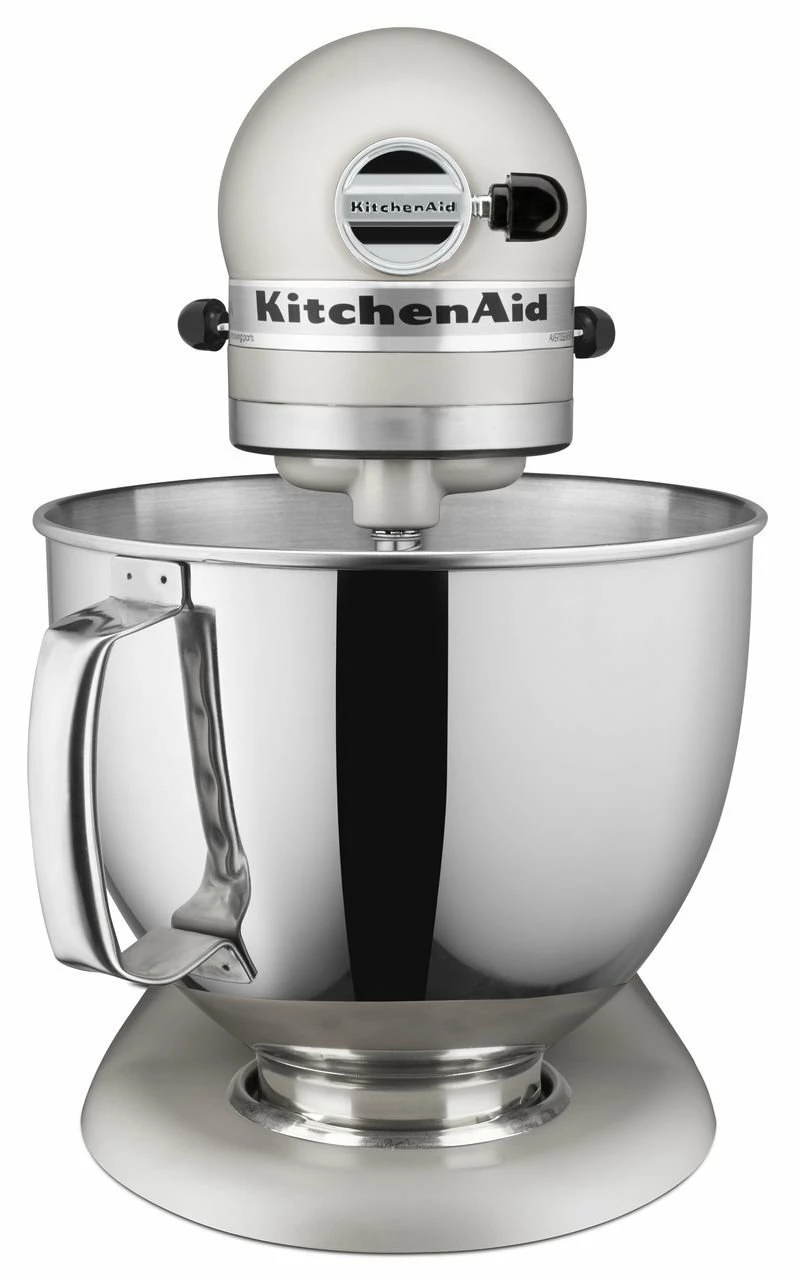 Mix up a batch of brownies, knead homemade pizza dough, or whip up meringue with the KitchenAid 5-Qt Artisan Stand Mixer! From desserts to appetizers and main dishes, the Artisan will open up a world of tasty possibilities. In matte Milkshake, the pale grayish color of a freshly mixed ice cream shake, it’s a neutral shade that will match any kitchen while bringing a unique pop of color to your counter.