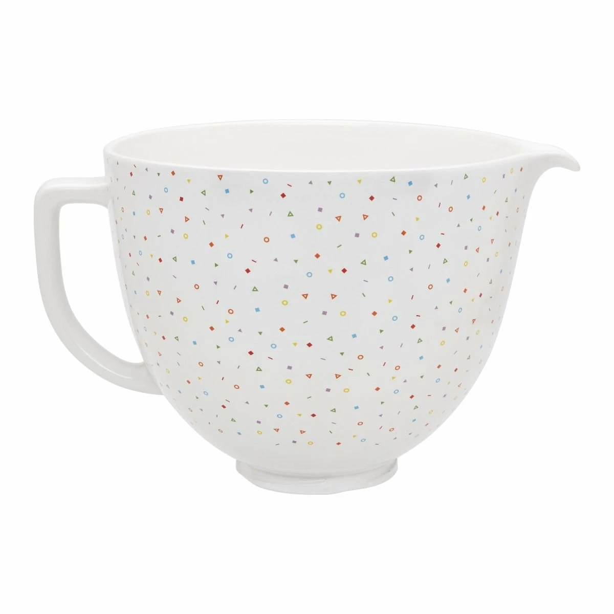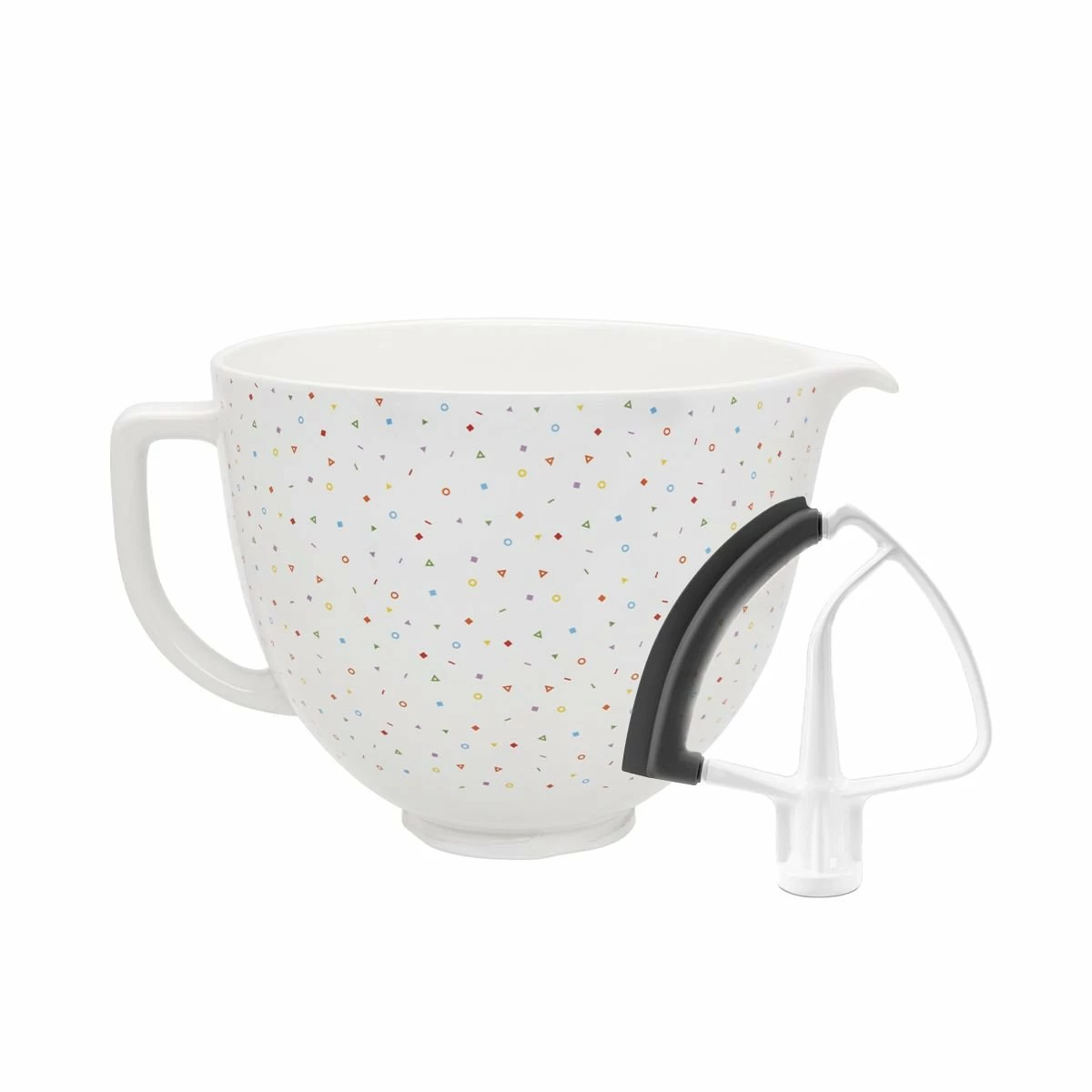 Mixing your favorite recipes is quick, easy, and a little more stylish with the KitchenAid 5-Quart Confetti Sprinkle Ceramic Bowl + Flex Edge Beater! This set includes a KitchenAid 5-Quart Ceramic Bowl & a KitchenAid Flex Edge Beater that are compatible with all KitchenAid 4.5-Quart & 5-Quart Tilt-Head Stand Mixers.
