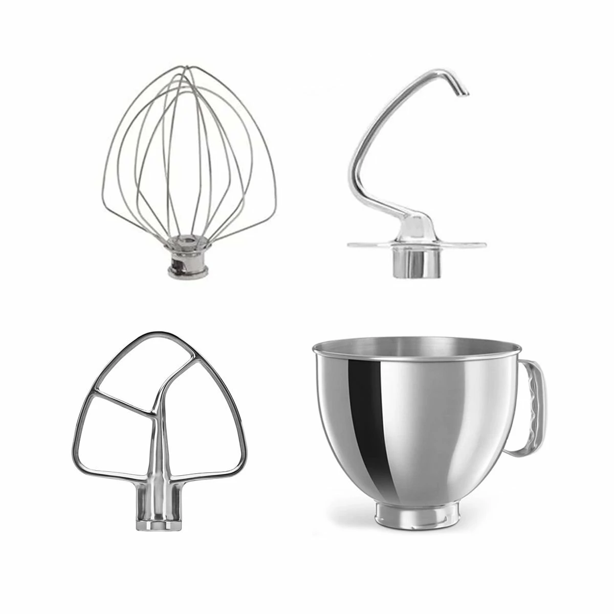 Upgrade your KitchenAid Arsenal with the 5-Quart Tilt Head Stainless Steel Bowl and 3-piece Stainless Steel Mixing Accessories including a dough hook, flat beater and wire whip!