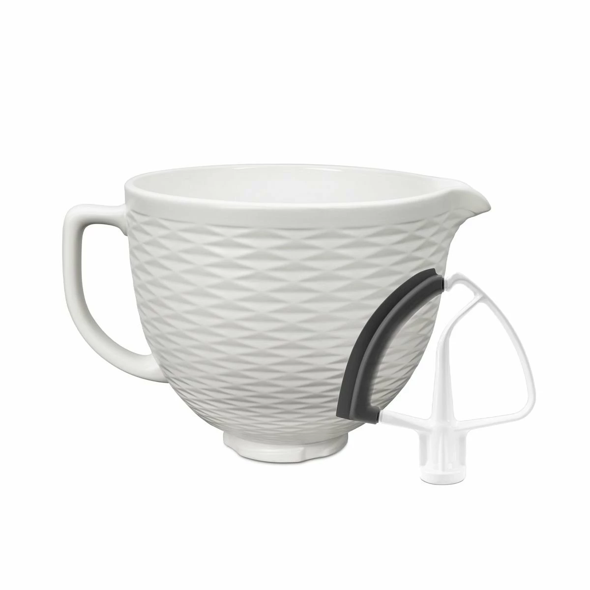 Mixing your favorite recipes is quick, easy, and a little more stylish with the KitchenAid 5-Quart White Chocolate Textured Ceramic Bowl + Flex Edge Beater! This set includes a KitchenAid 5-Quart Ceramic Bowl & a KitchenAid Flex Edge Beater that are compatible with all KitchenAid 4.5-Quart & 5-Quart Tilt-Head Stand Mixers.