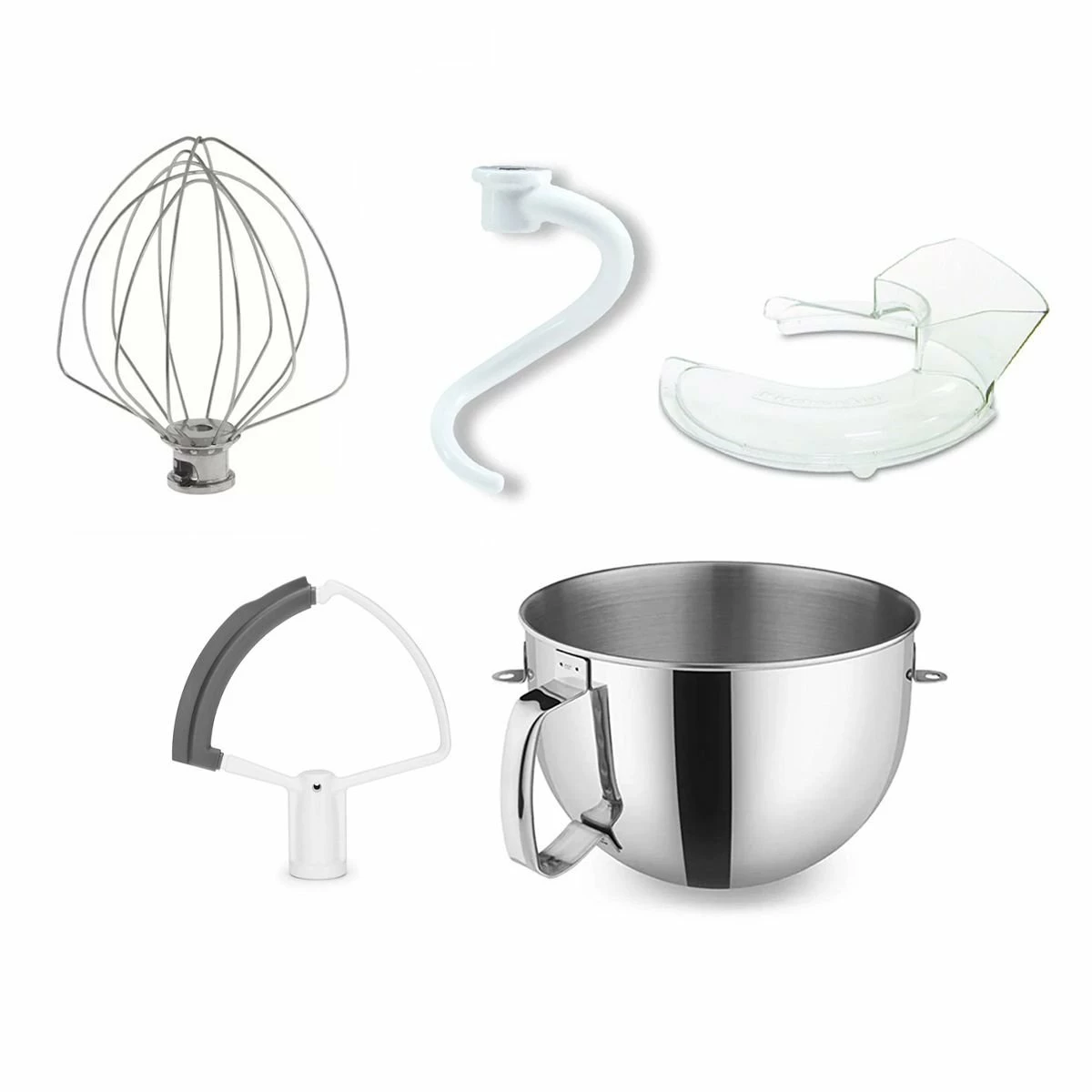 Upgrade your KitchenAid collection with a 6-Quart Stainless Steel Bowl, a Pouring Shield that fits a variety of KitchenAid mixing bowls, and three KitchenAid Mixer Attachments!