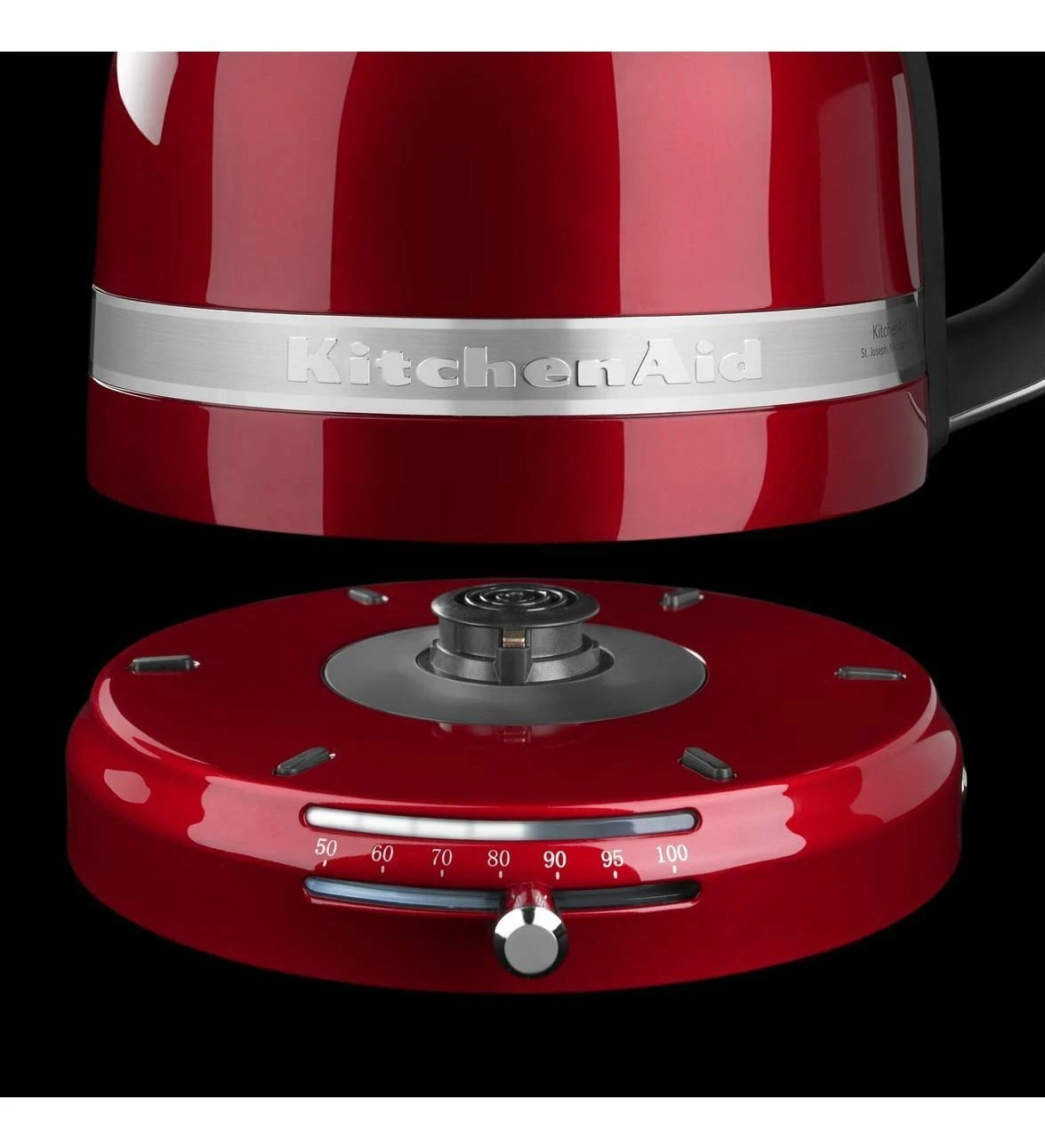 The KitchenAid Electric Water Kettle from the Pro Line collection marries the usefulness of a stovetop tea kettle with the portability and convenience of electricity. This unit heats room-temperature water to a range between 122° and 212° F (boiling) in adjustable increments via a simple slider on the unit’s bottom. This heated water can then be poured over tea, coffee, noodles, or hot cereal.