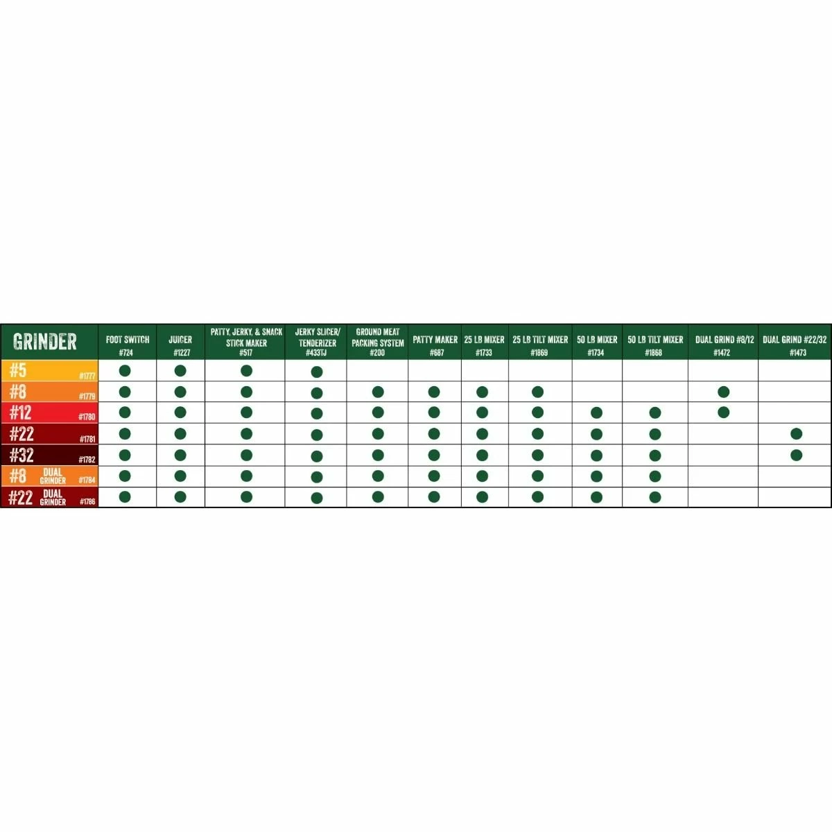 - All tubes for grinders #8, #12, #22, and #32 are included