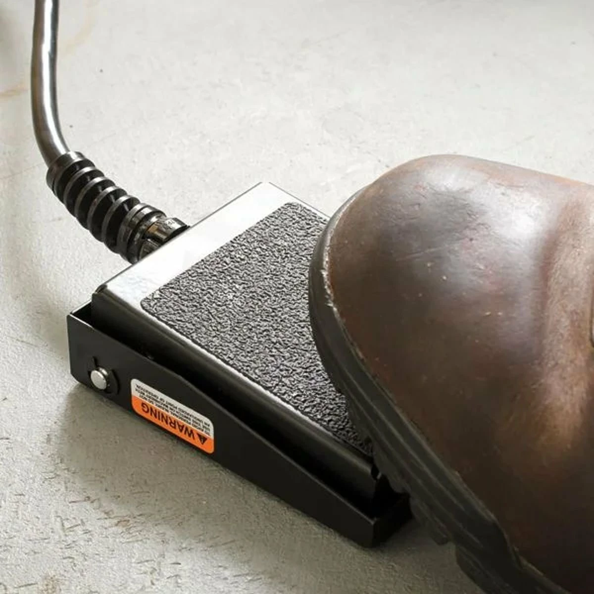 The LEM meat grinder is a ¾-HP of its 1.5-HP big brother, yet it has been refined with a rifled head, quieter gears, a larger-diameter throat, and storage drawer under the grinder head, making this a smaller but high-performance machine. Built for heavy duty action, the meat grinder processes about 11 pounds of meat a minute and features stainless-steel motor housing, all metal gears with roller bearings, a built-in circuit break, and a ¾-HP induction motor permanently lubed for softer operation. The most impressive feat is the exclusive Big Bite technology, allowing the auger to seize serious sections of meat and rapidly process for optimal grinding. Included is a meat stomper, knife, stuffing plate, two grinding plates, three stuffing tubes, and a heavy-duty meat pan. And what better companion than the LEM Grinder Foot Switch to pair with the meat grinder?! The switch attaches to any electric LEM grinder and delivers 110 volts, allowing your hands to multitask with meat-forming, casing sausage, filling ground meat into bags, and more!