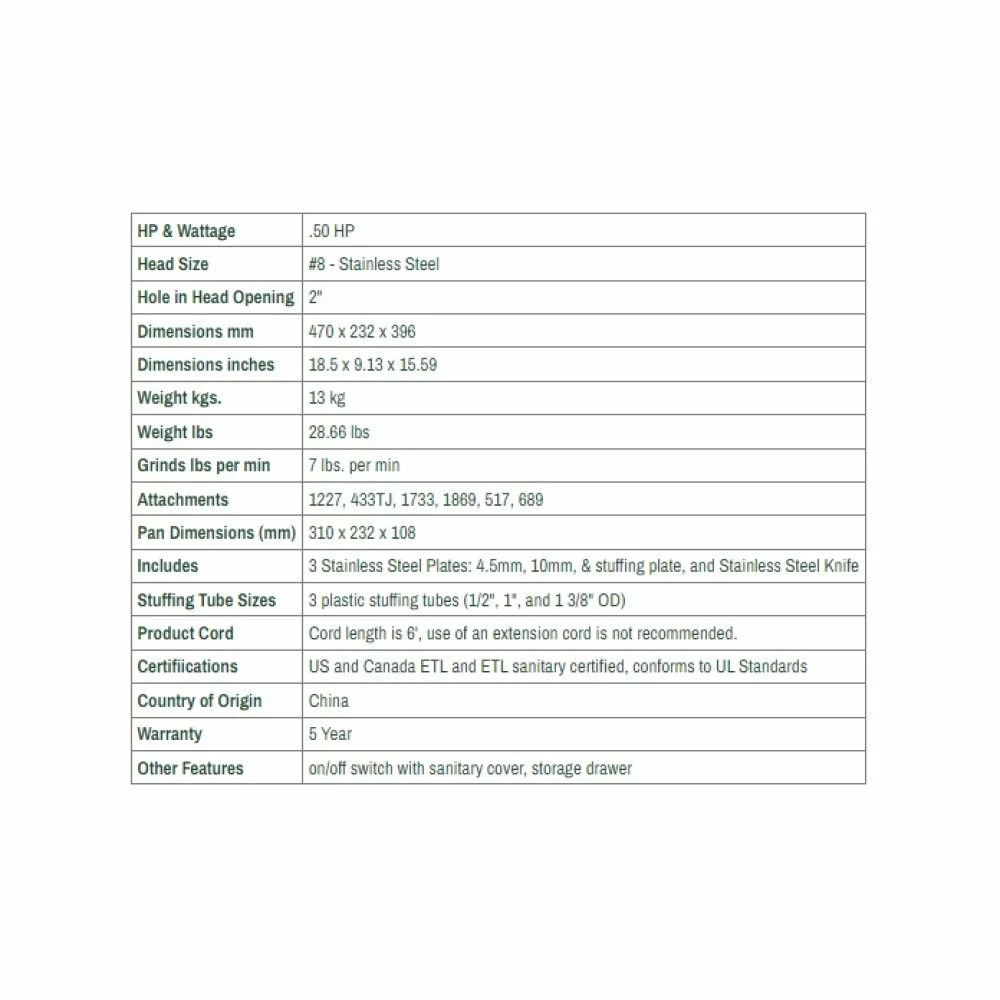 - Works with Big Bite Grinders (#5, #8, #12, #22, #32) made after 2009