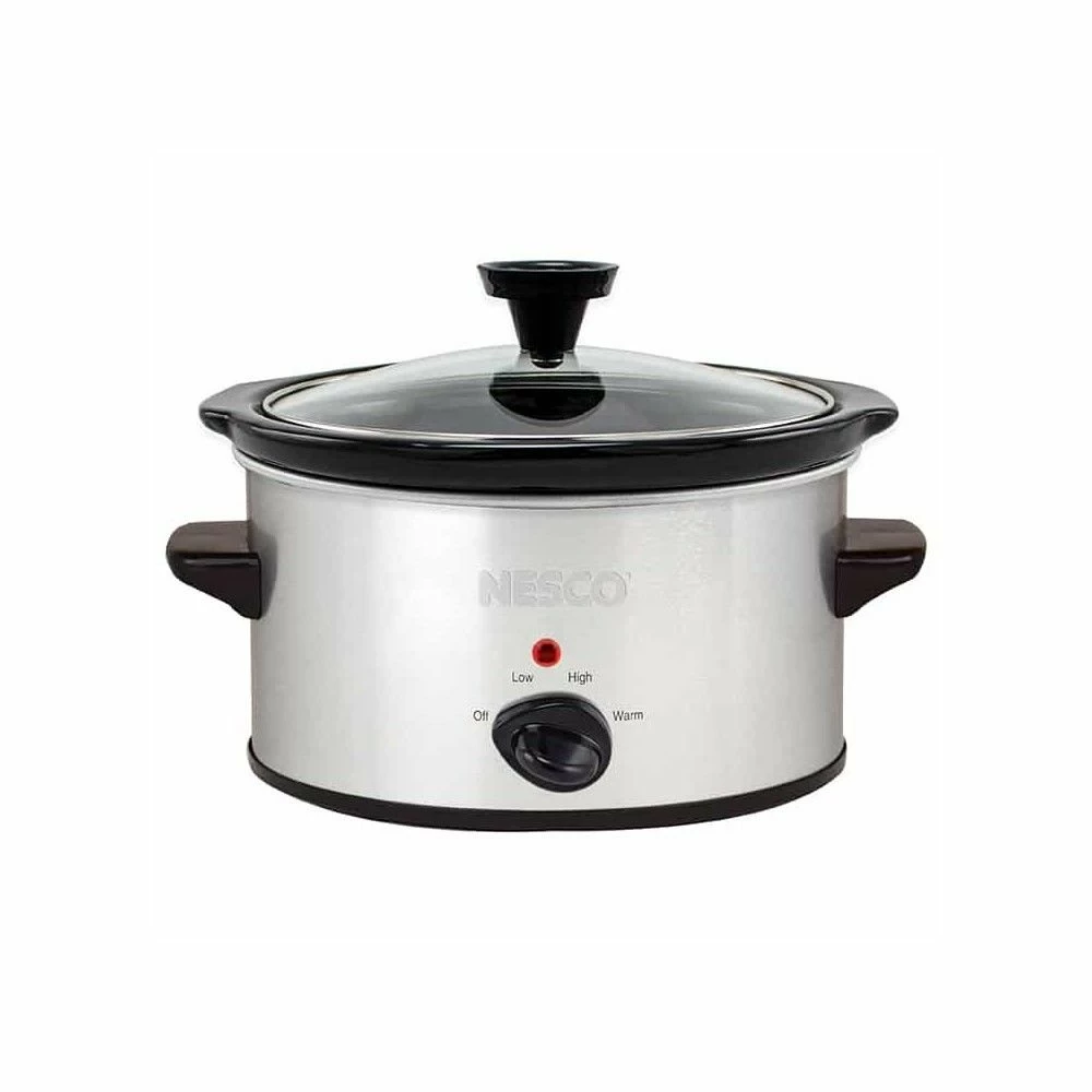 The NESCO 1.5 Qt. Slow Cooker in Stainless Steel makes mealtime and entertaining more flavorful. This compact slow cooker can cook delicious 1-2 person meals, appetizers, sauces and dips. Simply add your ingredients, choose your heat setting, and enjoy your family time. The removable ceramic pot is both oven and refrigerator-safe making meal prep for busy weekdays a snap. The clear tempered-glass lid lets you watch the cooking process. The stay cool handles make the unit portable allowing you to bring that delicious flavor anywhere. No matter the recipe or the occasion, the NESCO 1.5 Qt. Slow Cooker keeps the temperature steady so your food tastes great!