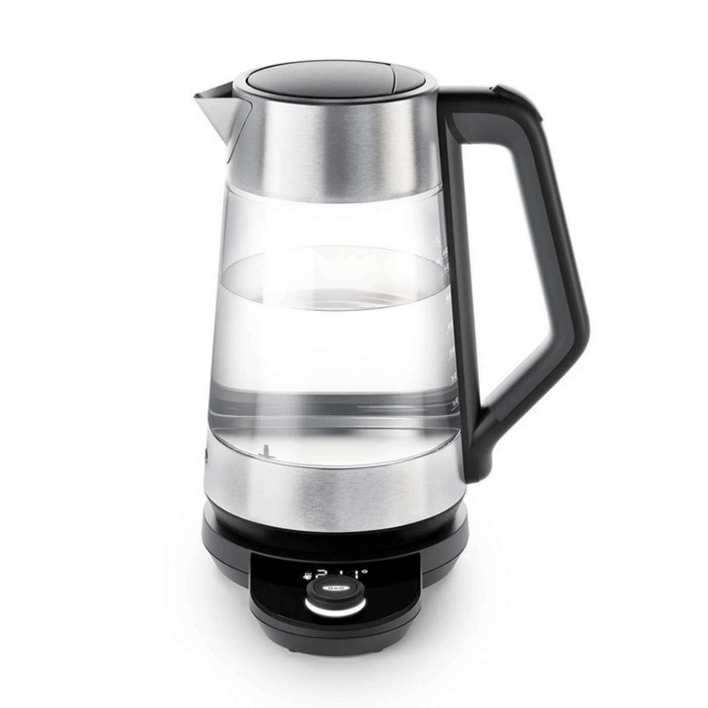 Savor the flavor of your favorite hot drink without any metallic aftertaste with the BPA-free crystal-clear borosilicate glass and sleek stainless steel. The kettle, once removed from the base, is cordless for optimal mobility. The silicone bottom of the kettle allows for safely placing on surfaces while still hot to better serve you and your guests. The strong borosilicate glass is shatter-resistant for long-term use in your home. Brew delicious cups of coffee or serve heartwarming tea to your guests with this OXO ON 60oz Adjustable Temperature Electric Kettle.