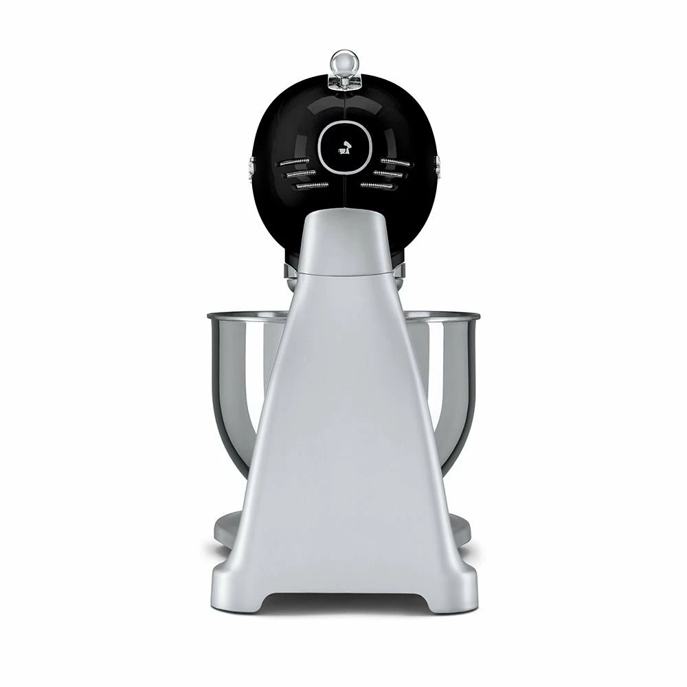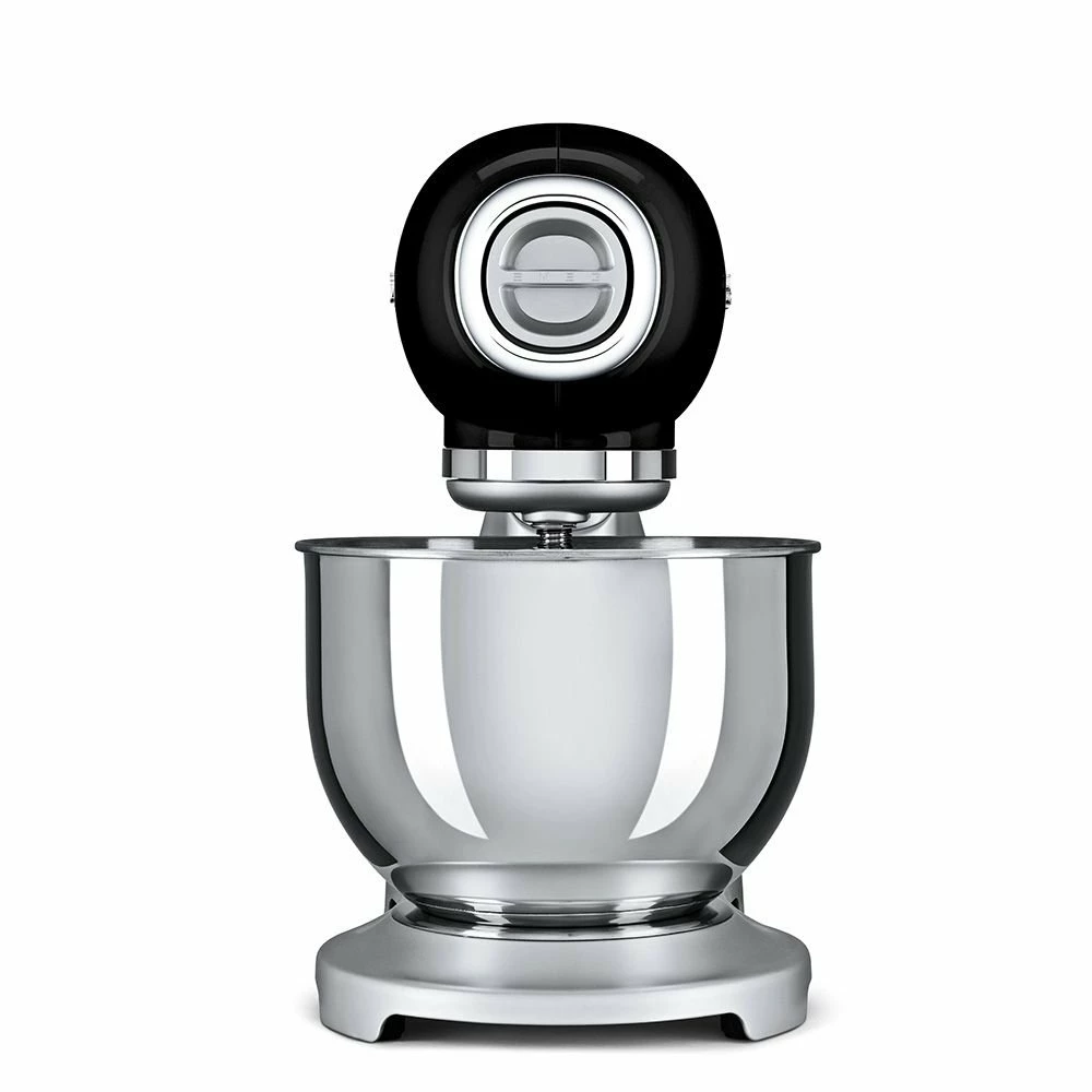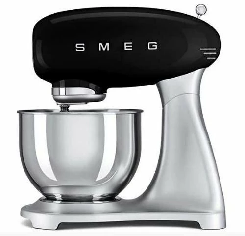 Acknowledged by many to be a design icon, the SMEG Retro Style Stand Mixer Black is another experience in awarding winning industrial design inspired by the glamour and rounded forms of the 1950s. This vibrantly finished, recently updated mixer is held to high standards of quality, with a die-cast aluminum body and zinc-alloy base that are built to withstand the test of time. With gripping feet and a safety lock option, you can keep your mixer working hands-free, giving you time to answer a call, or simply add more ingredients into your bowl. Each Stand mixer with a 600-watt power rating includes many accessories, including a redesigned wire whisk, dough hook, and flat beater, as well as the traditional pouring shield. Additionally, this updated mixer features a thicker bowl and new material for the base. SMEG Retro Style Stand Mixer Black offers the very best interpretations of traditional recipes and more sophisticated chef quality dishes.