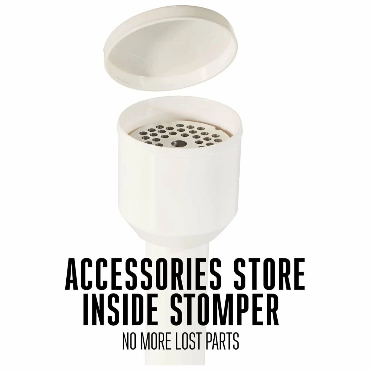 - Stomper doubles as an accessory storage case to keep pieces together when not in use