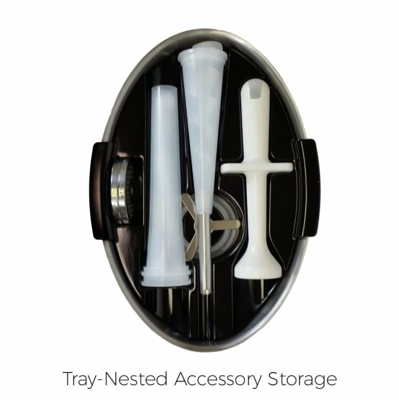 • Sausage Stuffing Kit (20mm, 30mm, and 40mm funnels, 10mm snack stick funnel, high-speed auger, stuffing star/spacer)